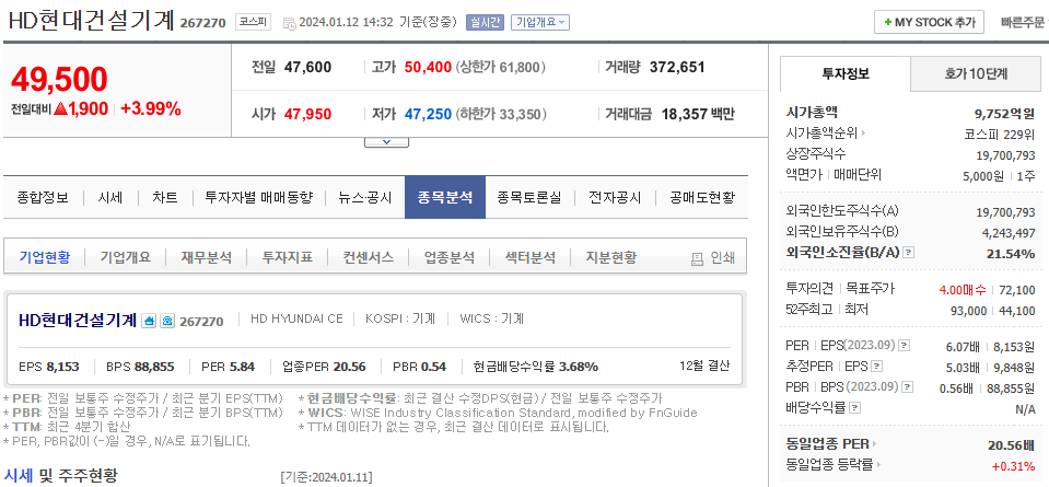 이번에 함께 찾아볼 종목은 HD현대건설기계 입니다.