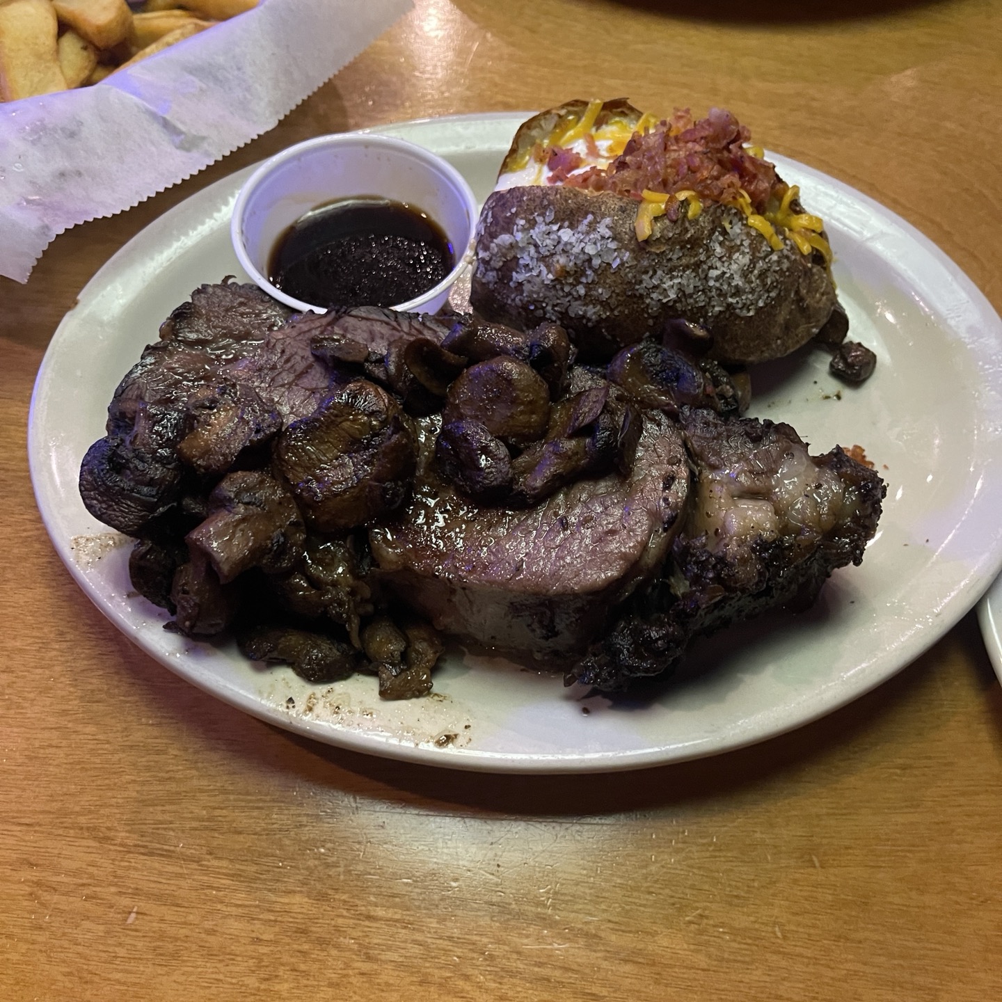 두 명이서 먹기엔 너무 많은 양이라 스테이크 반 / 립 반절을 먹고 나머지는 다 포장하였어요..